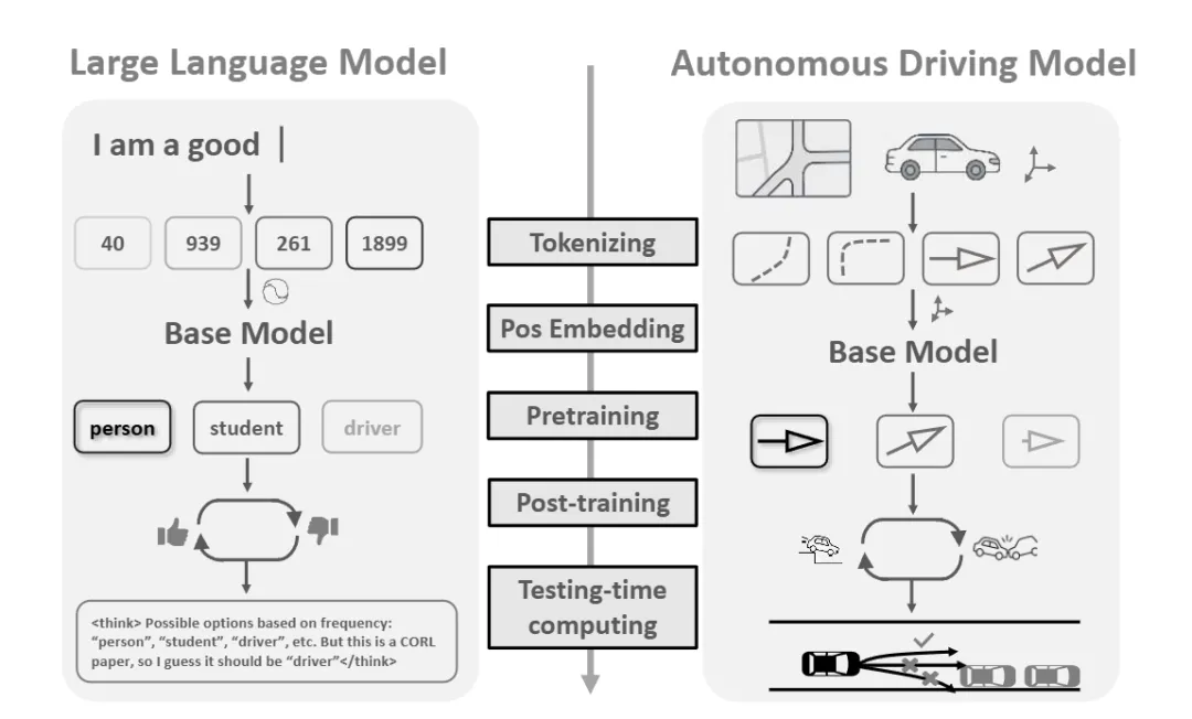 亮点:这篇论文对当前“将大语言模型组件迁移至自动驾驶运动生成”的热潮进行了一次系统性的实证检验。研究指出,尽管两者同属序列生成任务,但LLM的模块不能简单套用。为此,作者在Waymo Sim Agents基准上,围绕Tokenizer设计、位置编码、预训练与后训练策略、测试时计算这五大核心组件展开了详尽的“拆解式”评估。其核心结论并非给出一个万能模型,而是提供了一份基于实验的 “组件迁移指南” :明确指出了哪些LLM技术经针对性改造后能显著提升性能,哪些会“水土不服”及其原因。这项研究为如何理性、高效地吸收LLM成功经验,而非盲目套用,提供了扎实的实验依据与设计原则。