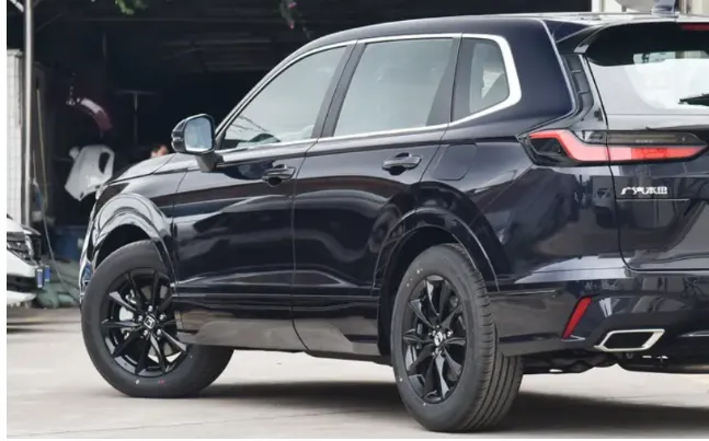 皓影侧面与本田CR-V有着高度相似,但两车的设计风格不一样,皓影会更霸气一些。比如17英寸的轮毂简约又运动,还用到黑色涂装,这使得侧面轮廓更加完整,营造出更霸气的视觉感受。同时,它也保留许多实用性的配置,比如机械门把手这些,都我比较喜欢的配置。皓影的尾部也要比本田CR-V运动多,特别是翼子板的颜值很高,还有尾灯组的造型也很运动,分层式布局加入黑色元素点缀,它尾部更运动一些,两侧的镀铬排气很大还是真的排气,尾部的包围很厚实,整体感很饱满。