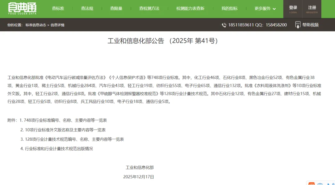 >工业和信息化部批准《电动汽车运行碳减排量评估方法》《个人信息保护术语》等748项行业标准