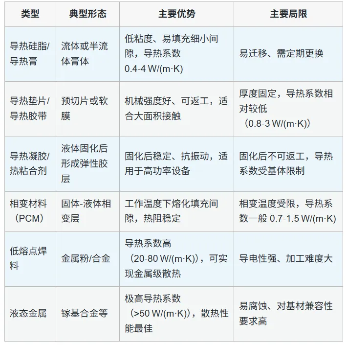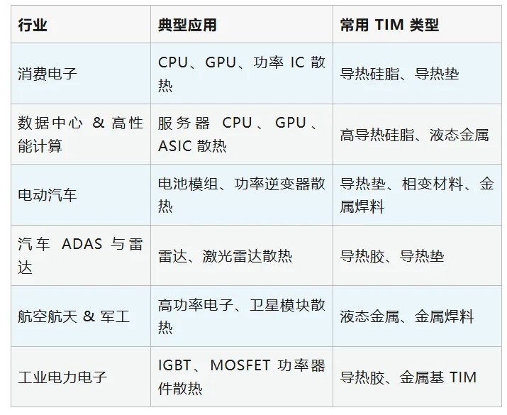 - 机械与电气兼容性:需绝缘或承受振动时,优先选用硅基或陶瓷填料的高分子基 TIM;对导热要求极高且可接受金属接触时,可考虑低熔点焊料或液态金属。