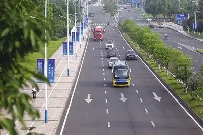图为参加2023智博会智能汽车应用场景挑战赛L3级/L4级自动驾驶公交车组别赛事的车辆行驶在重庆城区道路上。资料图片