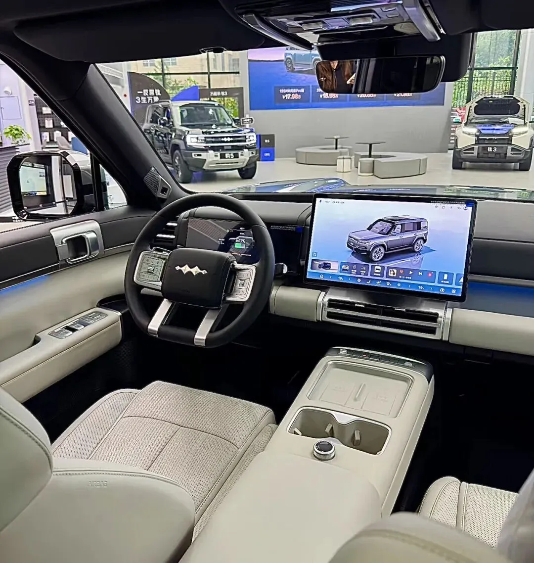 进店第一眼,豹5(即文中“钛7”)那方方正正的“方盒子”造型,确实硬朗帅气,有种小号仰望U8的既视感。我家老大直接喊:“爸爸,大坦克!”但拉开车门才发现,里头别有洞天。