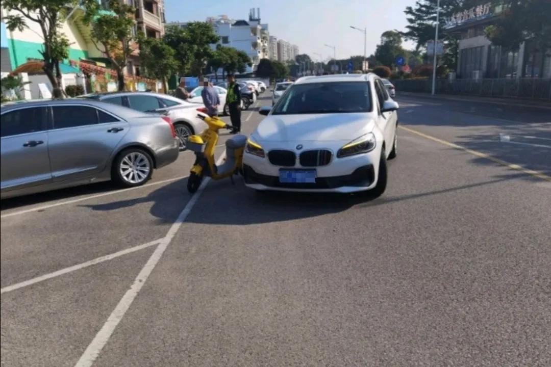 接到报警后,北海市公安局交通管理支队海城大队事故中队民警立即赶到现场处置。经通过现场勘查、调取监控视频、询问当事人等方式,认定梁某驾驶小客车时,未充分观察道路通行状况,未让直行的车辆先行,其行为是造成此次事故发生的直接原因,承担事故的全部责任;二轮电动自行车驾驶人高某无责任。