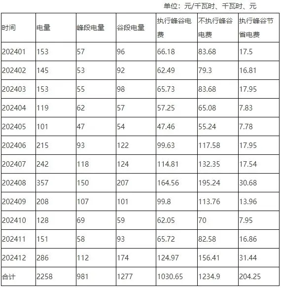 例如:家住临沂市平邑县的焦先生,选择执行分时电价政策,其2024年用电量2258千瓦时、电费1030.65元,若不执行分时电价政策,电费应为1234.9元,分时电价政策节省电费204.25元,降幅约17%。