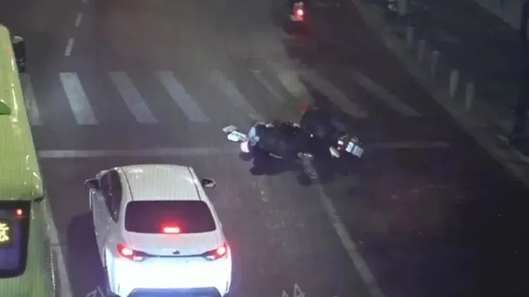 通过调取监控,民警还原了事发经过:该男子在应直行等待的情况下毫无征兆地突然左转,撞上左侧正常通行的庞女士。两人倒地后,男子扶起自己的电动车,与庞女士进行了短暂交谈。双方僵持近8分钟,均未报警或拨打120。