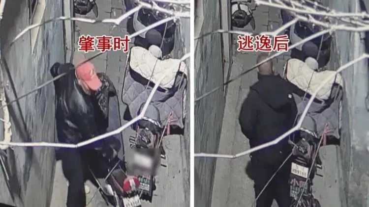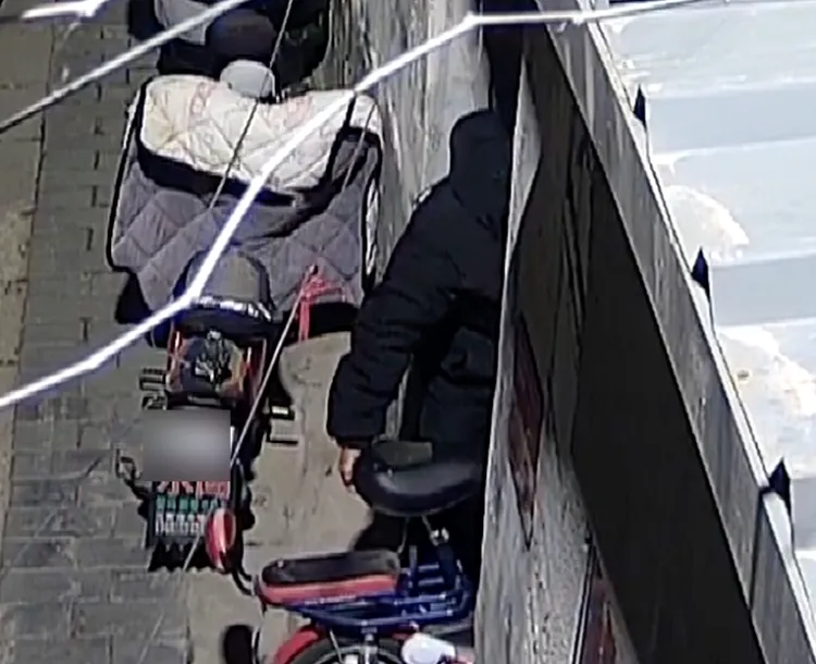 民警通过追踪发现,该男子逃入麻峪村内。该区域平房密集、巷道复杂,排查难度较大。经连夜走访,民警最终在一处民房前的监控中再次发现了特征高度吻合的男子:仍戴着红色棒球帽、身穿黑色皮衣,电动车牌也与庞女士所拍一致。
