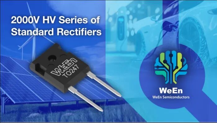 瑞能半导体(WeEn)是先进双极功率半导体解决方案的领导者,发布了其2000V高压(HV)系列标准整流器。这些整流器旨在满足高压系统不断变化的需求,与竞争方案相比实现了5%的正向压降(VF)降低并且热阻改进了20%。这些创新实现了可再生储能和电动汽车快充应用中的显著效率提升、降低冷却成本和延长运行寿命。