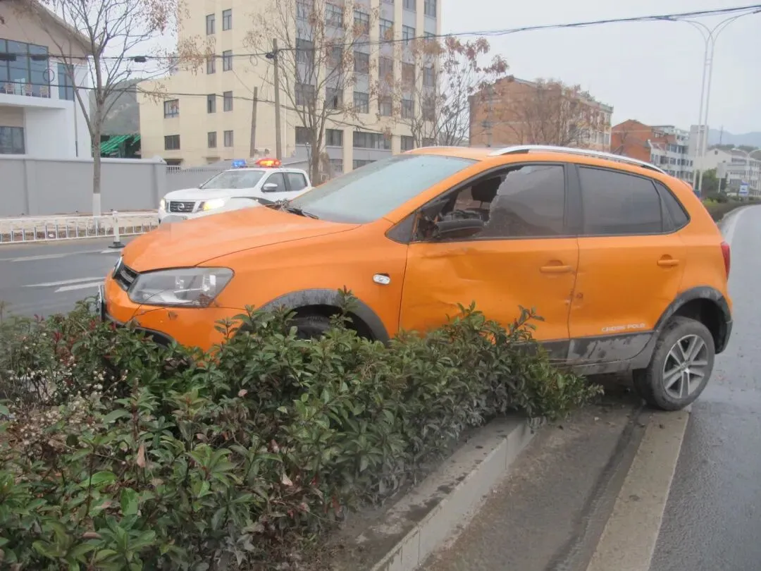 最终撞上花坛护栏