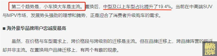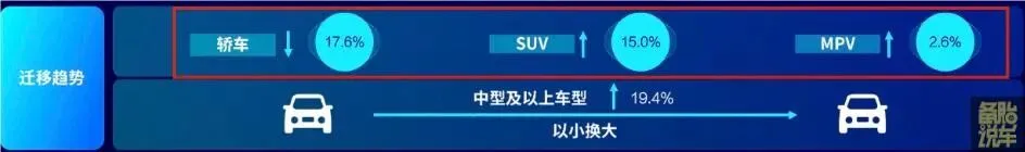 置换的时候,小车换大车是主流,中型及以上的车型占比提高了19.4%。