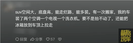 评论区很多朋友说:我买SUV,就图它后备箱大,方便。
