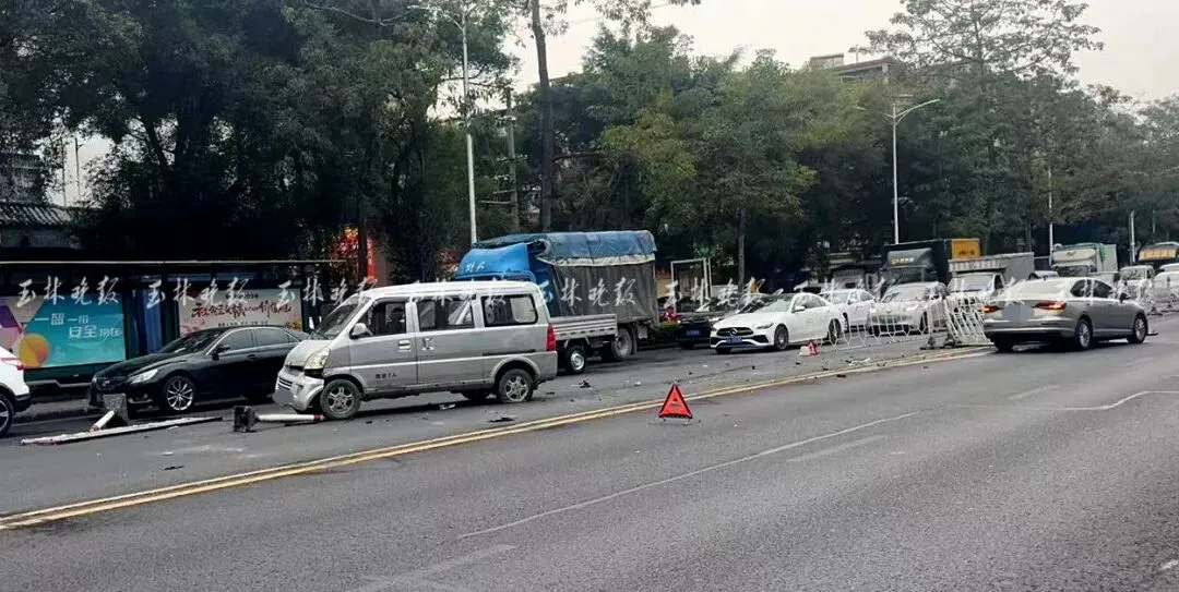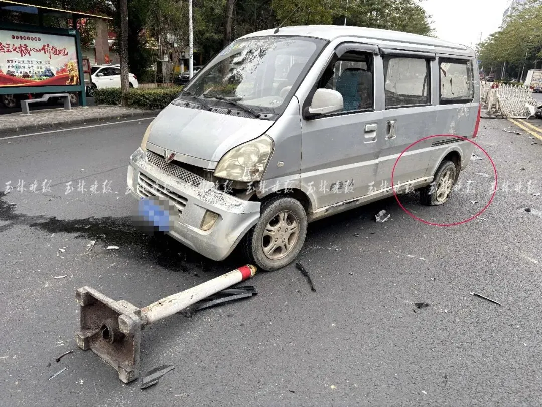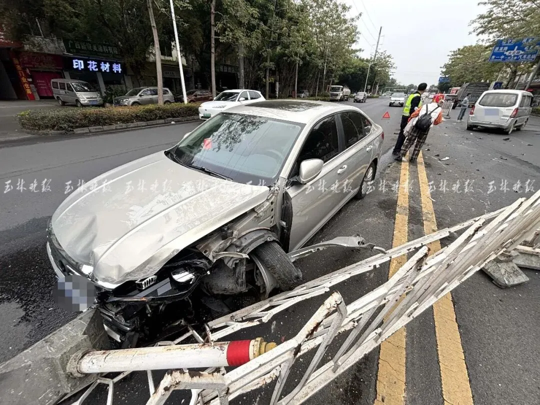 1月5日上午,在玉林城区一环北路古玩市场路段,一辆大众小轿车失控撞上路中护栏,飞散的护栏砸中对向车道一辆正常行驶的面包车。事故造成两车不同程度损坏,所幸无人员伤亡。
