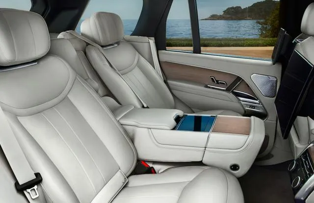 说到内饰,朋友们都知道,路虎揽胜从来不是靠“炫技”取胜,更多是讲究质感和氛围。这一代你说布局有多前卫,其实也还好,整体中规中矩,没那种“飞机驾驶舱”的花哨感,甚至有朋友觉得有点保守。但话说回来,用料是真的舍得下本,木纹饰板、哑光铝饰板、真皮包裹,摸得到的地方都很扎实。方向盘双色皮质拼接,手感细腻。科技配置也不落下,13.7英寸液晶仪表+13.1英寸悬浮式多媒体大屏,InControl OS 2.0车机支持导航、听歌、在线升级,实体按键保留了常用功能,开车盲操作很方便。后排还有两个11.4英寸触控屏+8英寸中央扶手屏,行政级享受。虽然整体氛围偏稳重,但用起来的确很舒服,科技感和实用性兼顾,完全不鸡肋。