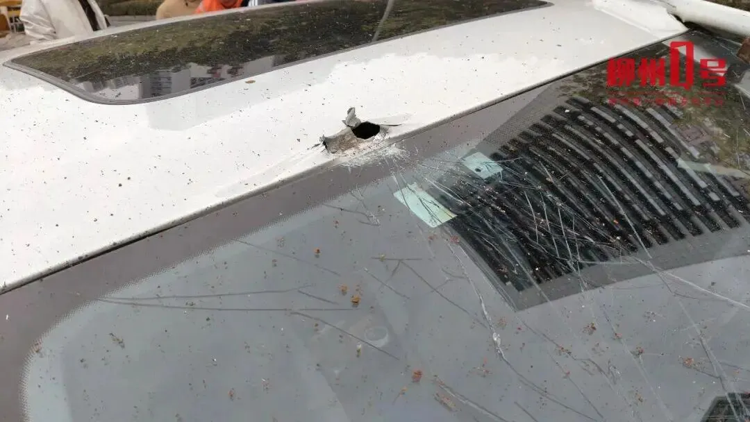 记者赶到现场时看到,近30米长的隔离栏断裂、变形,散落一地。事故车辆损毁严重,车头凹陷,面目全非。最吓人的是,车祸中,一根隔离栏钢管刺穿了车顶,留下一个直径近两厘米的洞。