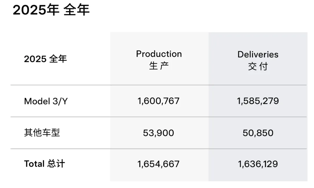 据央视财经报道,特斯拉公司于1月2日正式公布年度销量数据,2025年全年特斯拉累计交付163.61万辆(包括交付158.53万辆Model Y和Model 3)新车,较2024年的178.9万辆下滑幅度达8.6%,低于市场预期的165万辆。这也是继2024年同比下滑1%至178.9万辆之后,特斯拉连续第二年销量出现下滑。