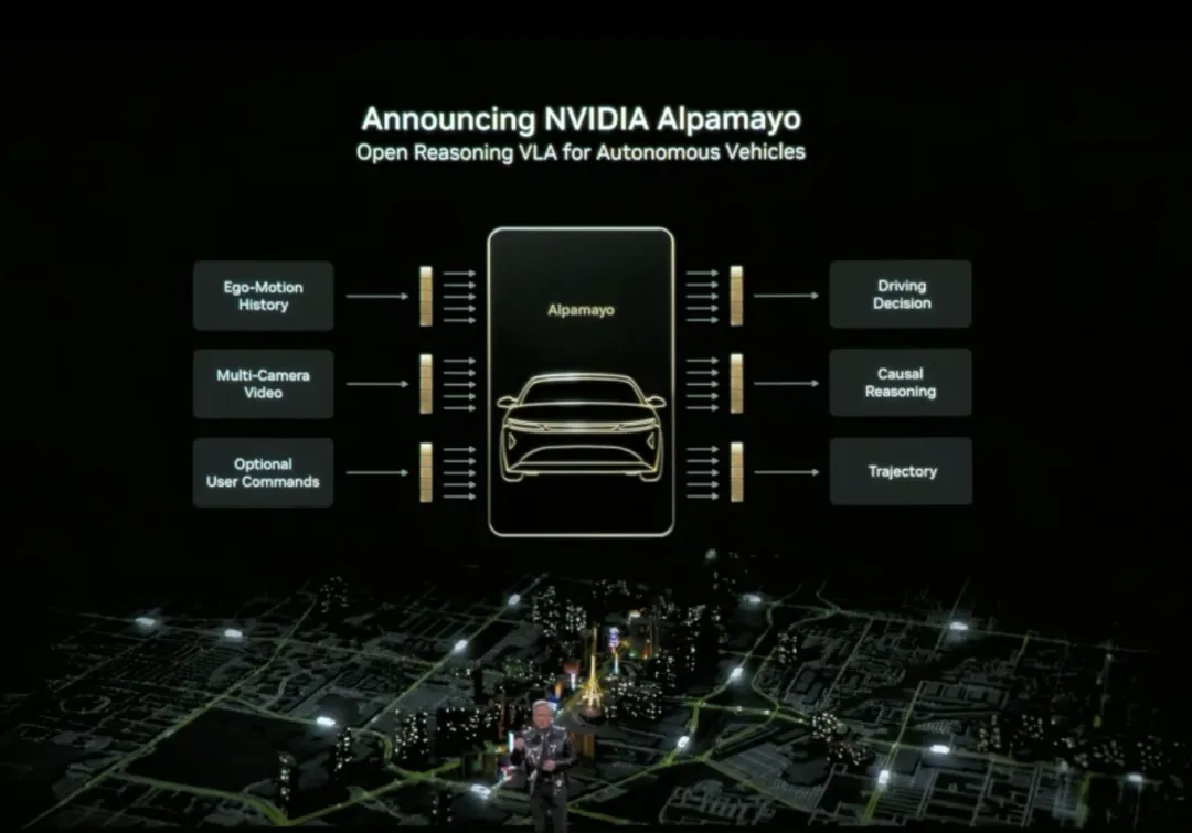 ◎ Alpamayo 则面向自动驾驶,是一个完整开源的工具链,也是首个开源的视觉-语言-行动(VLA)推理模型。