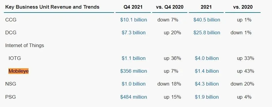 从2017年至2021年,Moblieye的芯片出货量分别为1240万颗、1750万颗、1930万颗、2810万颗,而2021年,它的EyeQ系列系统集成芯片累计已卖出一亿颗。