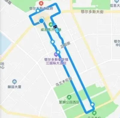 路线全程约7公里,覆盖市府南街、鄂尔多斯大街、民族路、团结路、文化西路、文化东路、湖滨路,计划停靠鄂尔多斯市政府、鄂尔多斯博物馆、锦江国际酒店、乌兰木伦湖区广场4处站点。