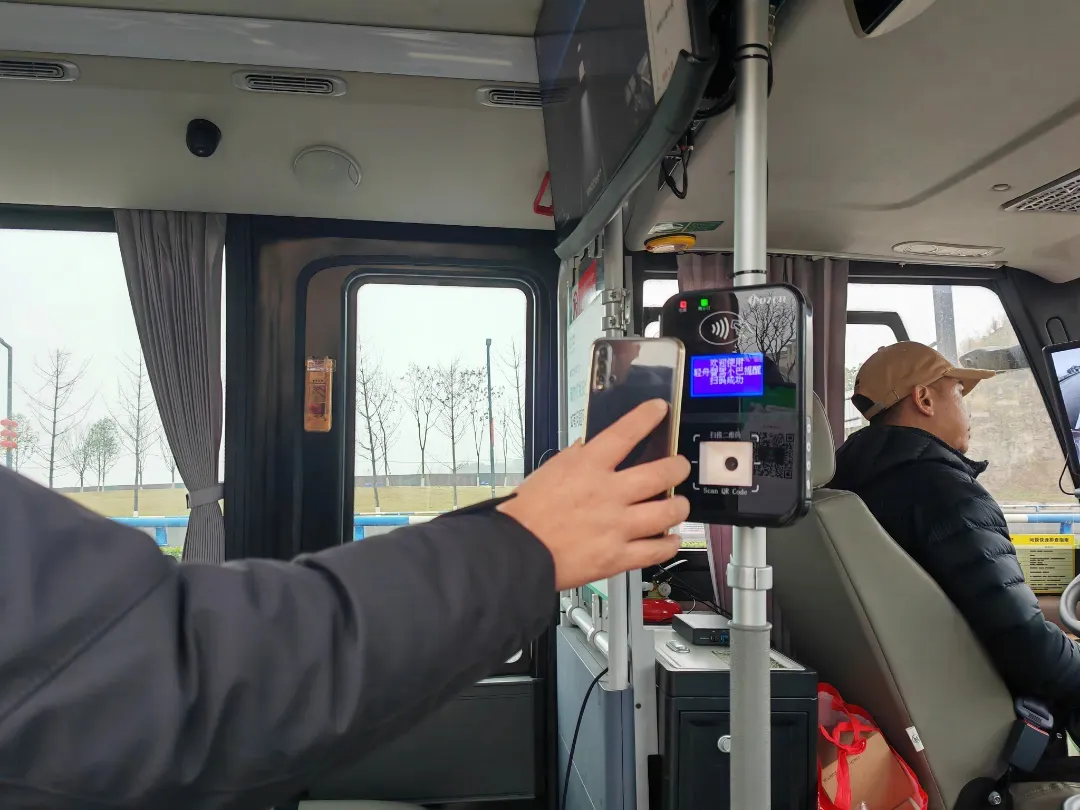 乘客扫码上车(仅作乘车人流量统计,并不是付费哦)。