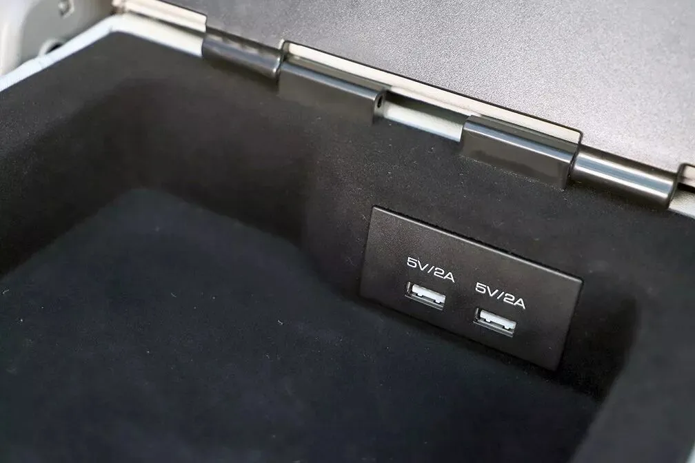 后排中央扶手箱内部同样配有2个USB接口,为后排乘客带来了不错的便利性。