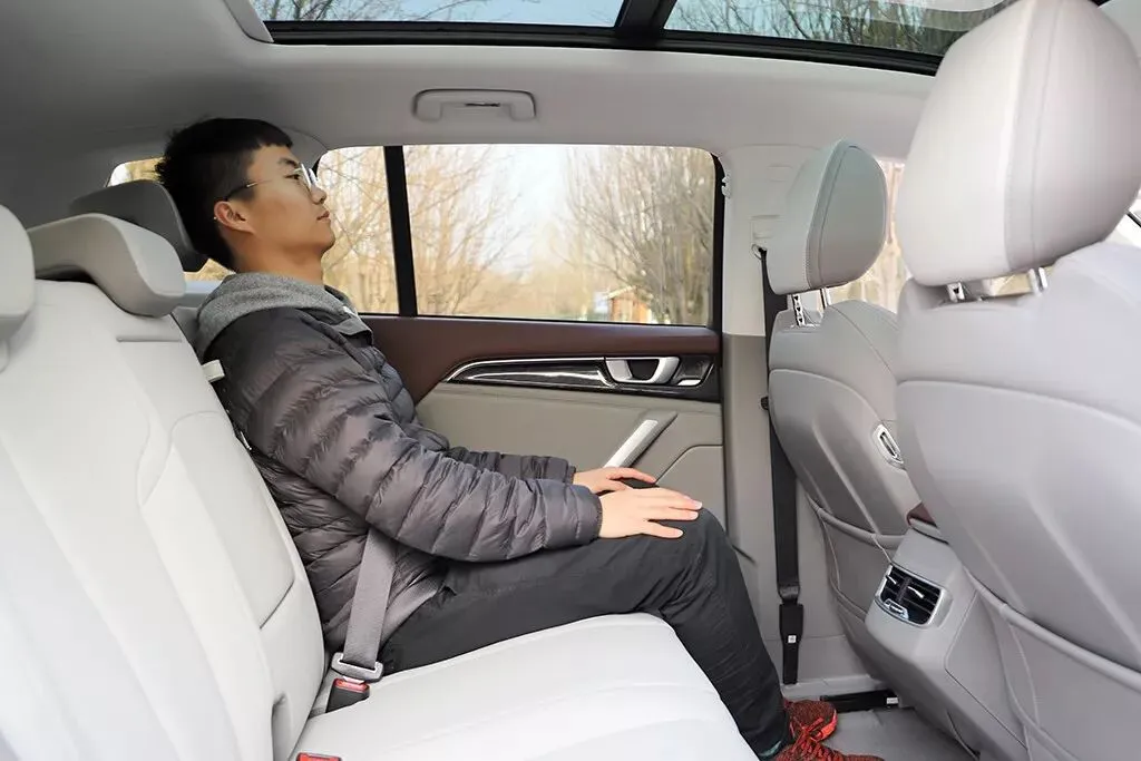 保持前排座椅不动,体验者来到后排,头部空间剩余四指,腿部则是有着两拳多的空间,表现不错。