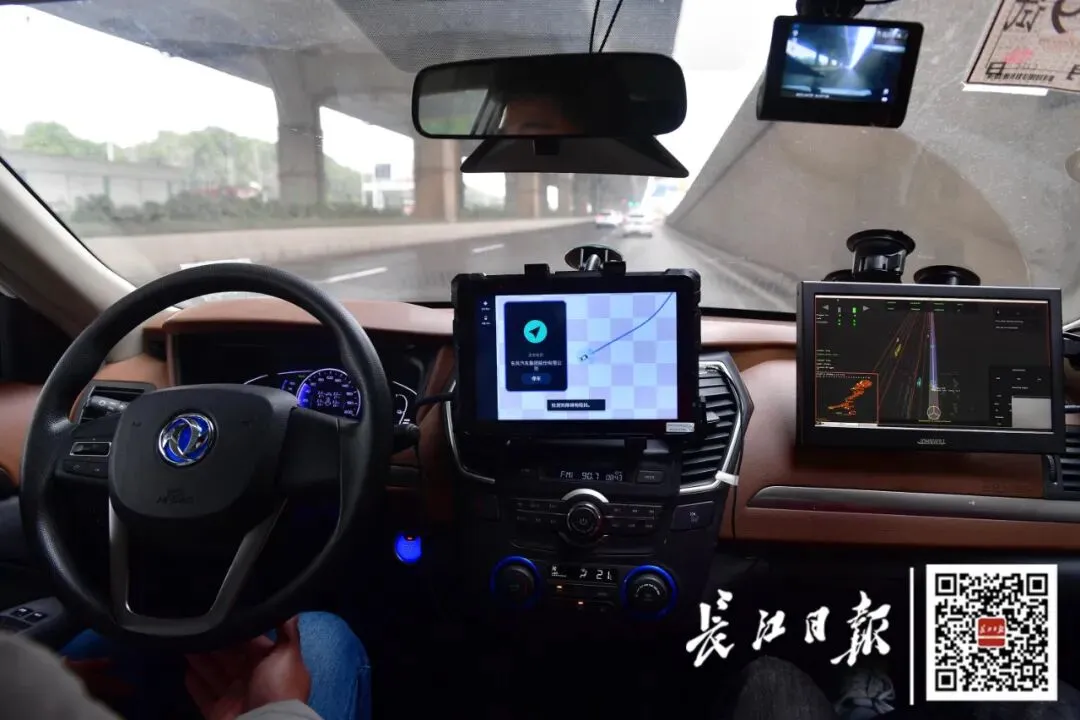 27日,东风自动驾驶领航项目Robotaxi平台上线,媒体体验车辆在开发区车城西路以无人驾驶的方式行驶。记者李永刚 摄