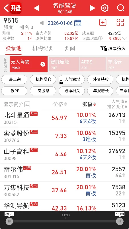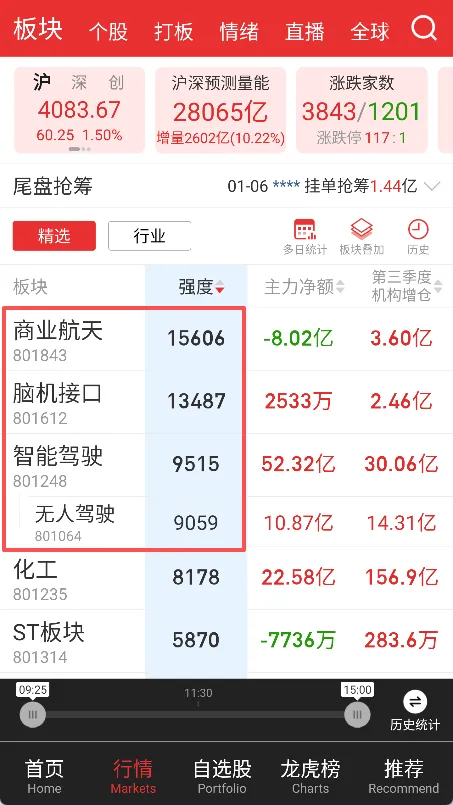 板块方面,仍是以科技为核心,像商业航天、脑机接口以及智能驾驶等板块,今天持续火爆。