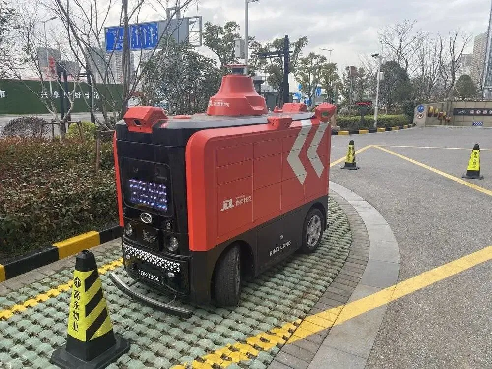 中午,我从激光雷达公司Ouster的苏州办事处出来,正巧看到京东的无人物流小车停在楼下的固定位置,一位程序员若无其事地从里面取了包裹离开,告诉我“它会在这里停两小时,才会离开前往另一个办公区”。