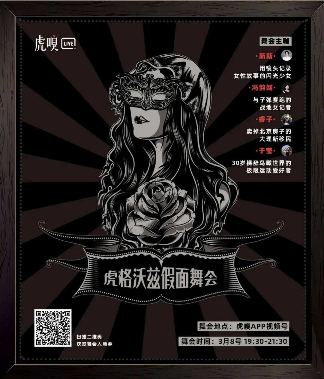 3月8日19:30,戴上面具来「虎嗅APP」视频号直播间参加假面舞会吧
