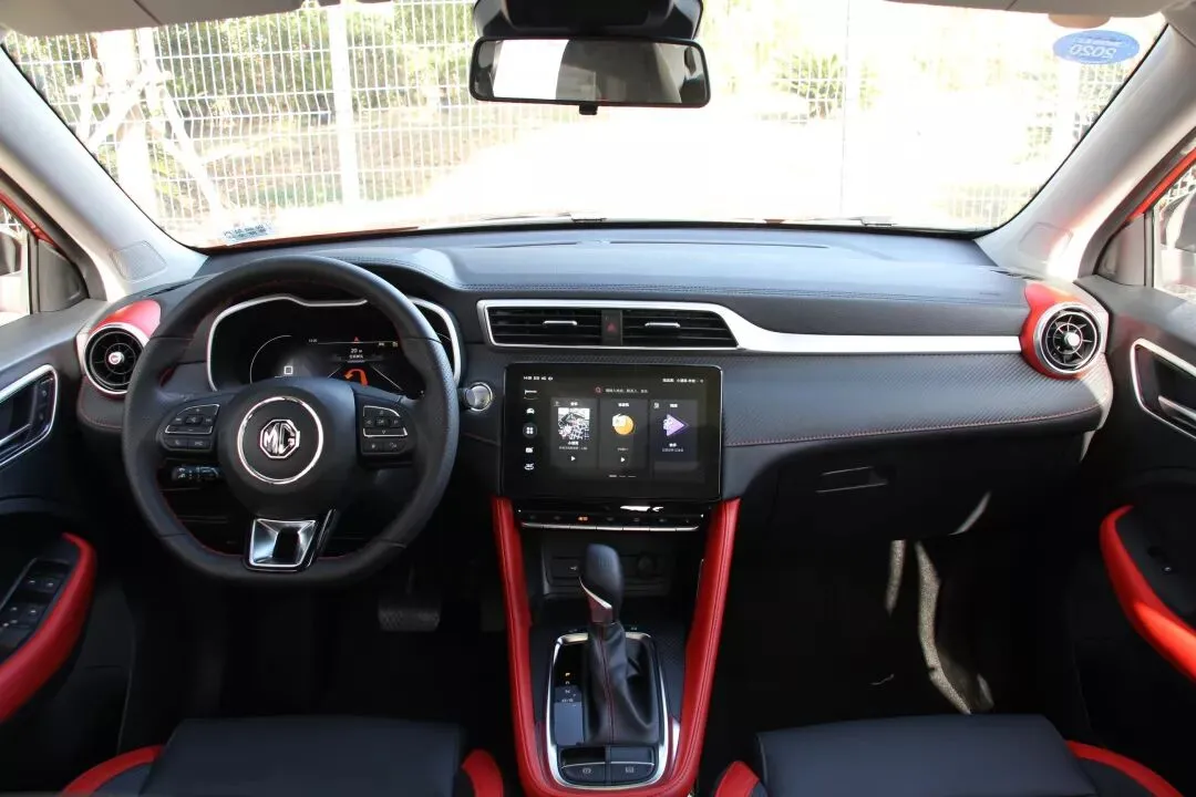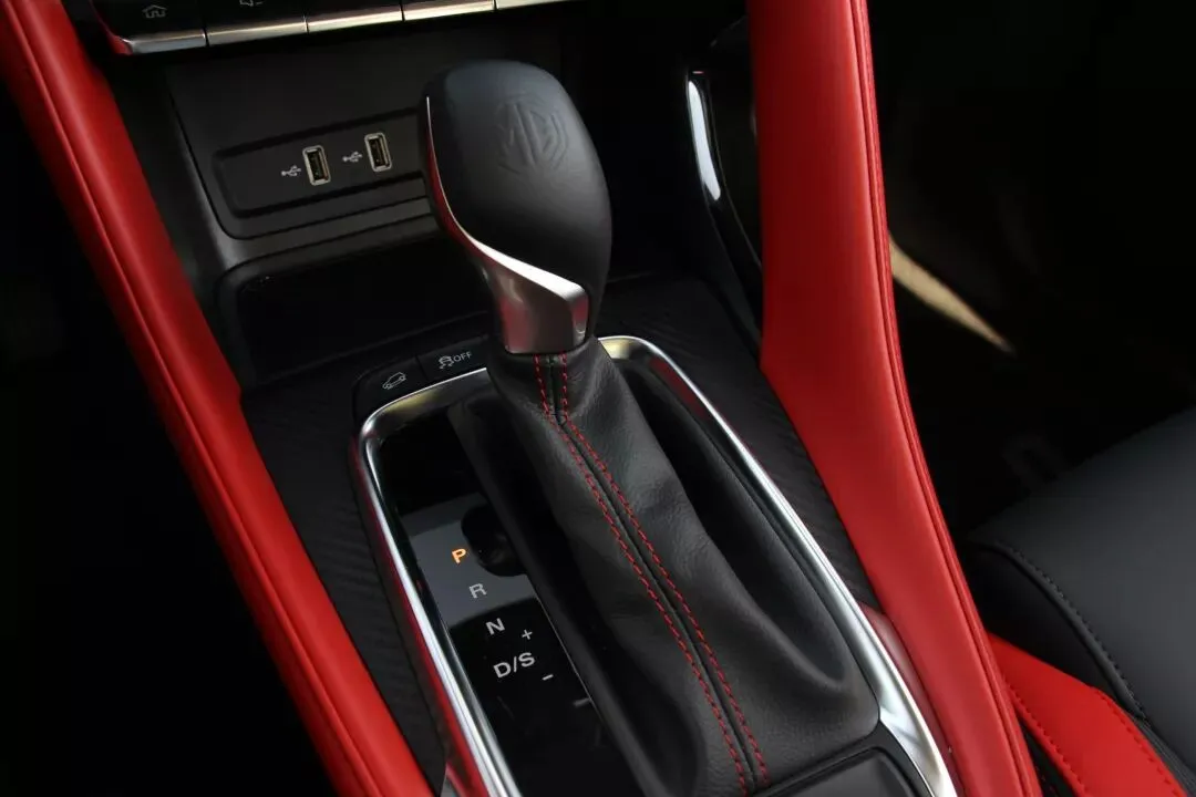 Trophy车型的内饰为红黑拼色风格,同时中控台顶部、档把周围、车门板使用大量软性材质包裹和覆盖,前排头枕带有名爵刺绣logo,手感和视觉效果都更具档次。