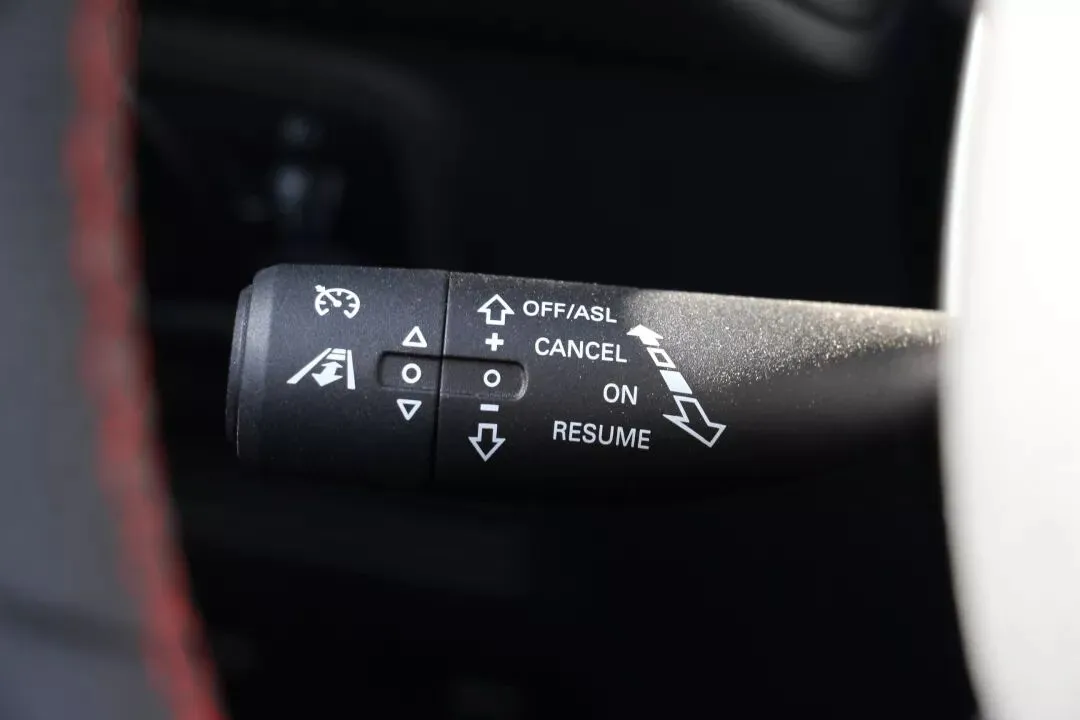 自动驾驶功能的开启方式也非常简单,连续拨动两次方向盘左下方拨杆即可,开启之后全液晶仪表中央也自动切换为车辆行驶状态。