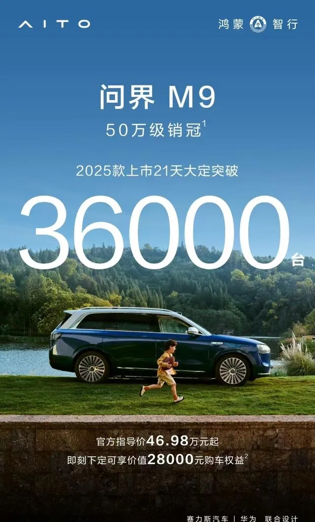 其实,问界M9能火,还得益于它精准的市场定位和创新的营销方式。锁定“科技爱好者+家庭用户+商务人群”重叠圈层,一台车满足多种需求。采用华为直营体系,统一定价、服务到位,用户反馈能及时迭代,体验感更好。再加上明星车主口碑、技术话题热度,形成了口碑自传播。你看,2025款刚上市21天,大定就突破36000台,这种爆款效应不是偶然,是品牌、产品、生态三重合力的结果。