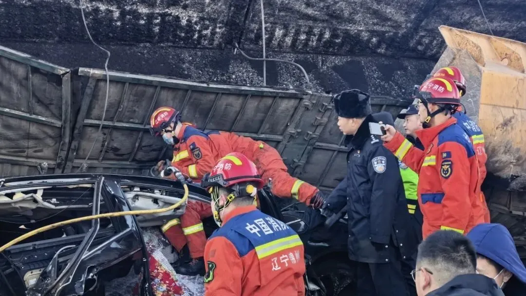 元旦假期,义县留龙沟镇附近公路上,发生一起惊险交通事故。一辆由西向东行驶的重型装煤半挂车突然失控侧翻,整车煤炭随车体倾泻而下,将对向正常行驶的一辆小型轿车完全压埋,一名女驾驶员被困车内,情况万分危急。