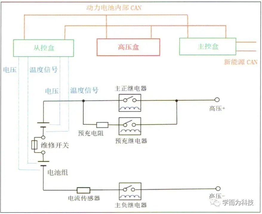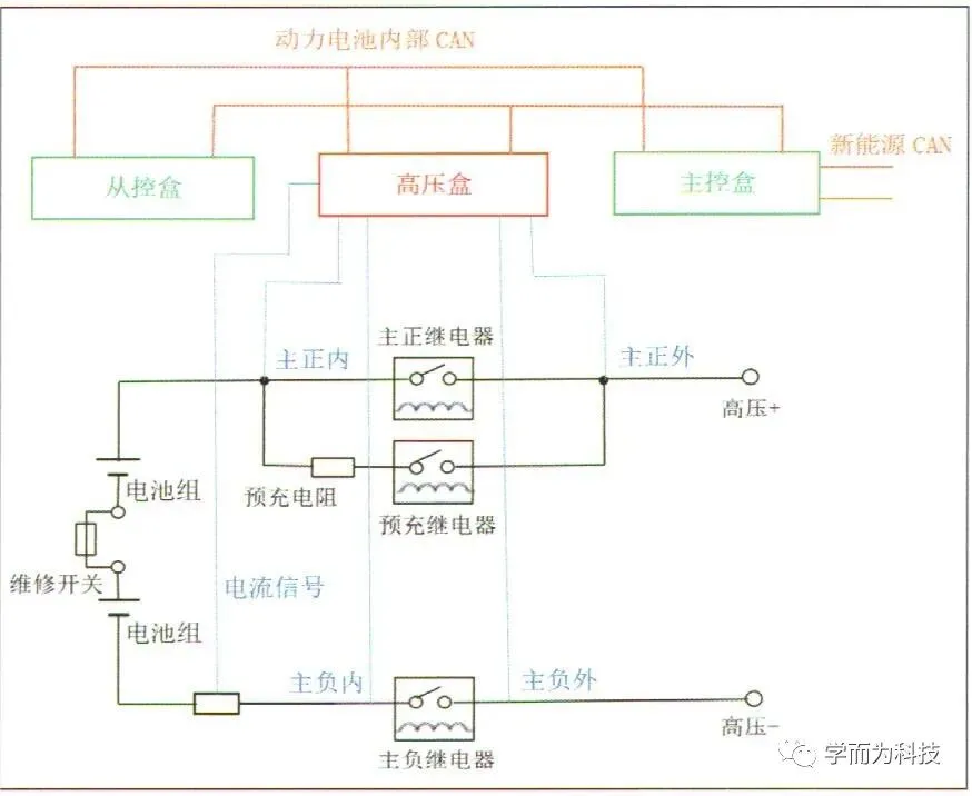 (3)主负继电器,由整车vcu控制,接通/断开动力电池负极。