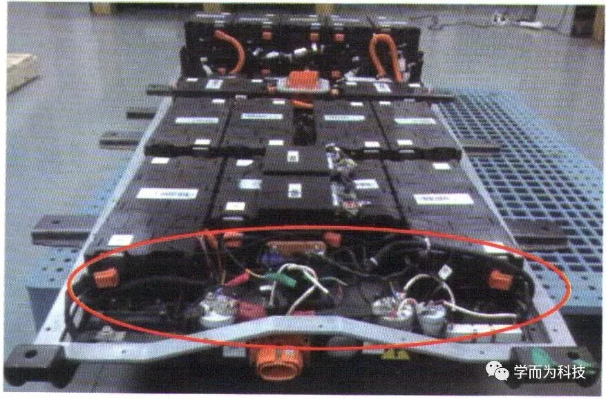 主控盒大多安装在电池箱内,也有安装在电池箱外。安装在电池箱内的,采取1主N从,称作分布式;主从合一称作集中式,如图6所示,这种型式如线束破损则容易产生安全隐患,还容易使BMS短路而烧毁。