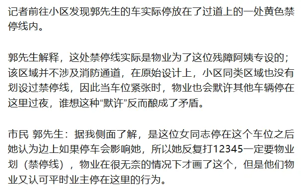 郭先生说,由于搬来不久,自己与这位残障阿姨并不认识。碰撞事件发生后自己非常心疼,而这位阿姨的态度却非常强硬,"她说的是我挡了她道"。