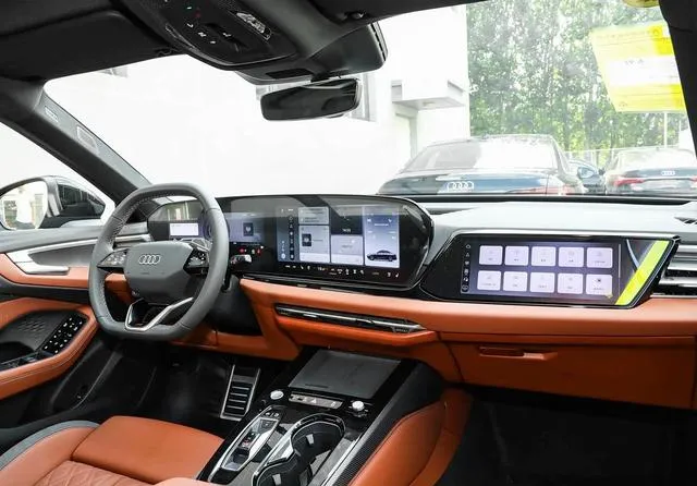内饰部分,奥迪这一代的设计风格有点两极分化。先说不足,布局没以前那么讲究,部分区域用料有点塑料感,甚至有朋友吐槽副驾驶手套箱那块“显得有点廉价”。但转念一想,关键的地方还是舍得用料,中控台和门板大量软包,真皮方向盘手感细腻,整体质感在同价位里绝对不输。三块大屏最抢眼——12.3英寸全液晶仪表+10.1英寸中控屏+8.6英寸空调/多媒体屏幕,科技感直接拉满,操作逻辑挺顺手。虽然有些物理按键被省略了,但常用功能保留了盲操作区,开车用着还是很方便。车机支持导航、听歌、蓝牙电话,部分车型还支持OTA升级,虽然语音识别跟国产品牌比有差距,但日常足够用。说到底,虽然不是最炫的智能座舱,但实用性和科技配置都给到了。