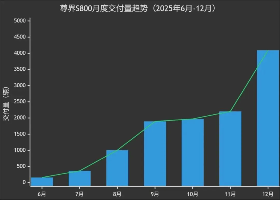 尊界S800的月产能达到四千辆规模,12月实际交付预计达到4095台。