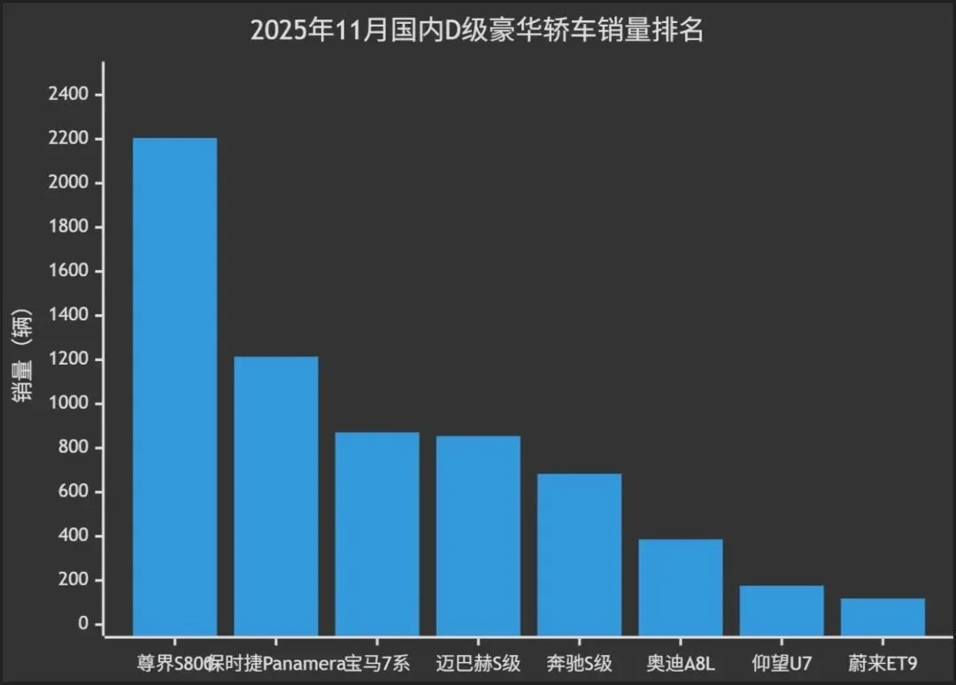 去年10月,在尊界S800交付1970辆的同时,位列榜单第二的保时捷帕拉梅拉交付785辆、第三位的宝马7系含i7总计749辆。位列第四、第五以及第六名的,分别为迈巴赫S级(659辆)、奔驰S级(572辆)以及奥迪A8L(351辆)。