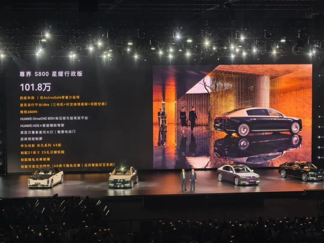 去年8月4日,正式上市67天以后,官方宣布了第10000辆大定的消息。然后便是三个半月后的11月20日,在享界S9新品发布会上余承东亲口透露“尊界S800上市175天,累计大定已突破18000台”。