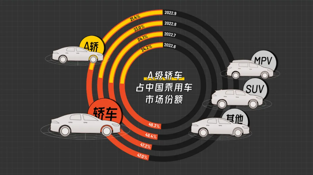 自主品牌想要崛起,A 轿市场是必须攻克的一关,也是最难啃的骨头,有“得 A 轿者得天下”的说法。多少自主品牌前仆后继想要突围,但都折戟沉沙。