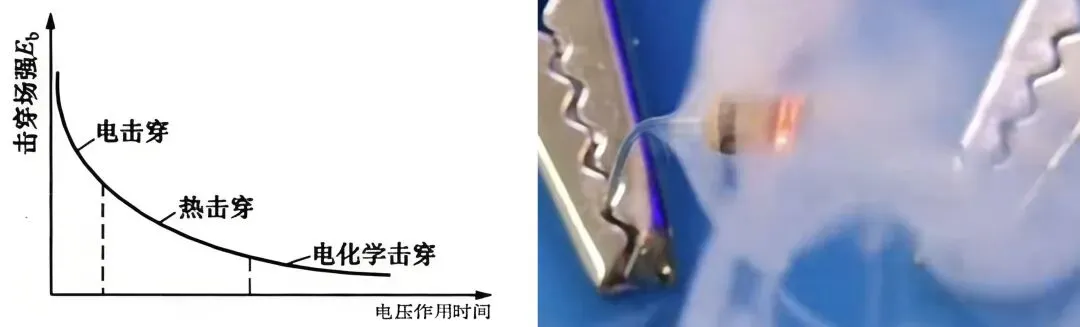 普遍规律:介质的击穿总是从电气性能最薄弱的缺陷处发展起来的,这里的缺陷可指电场的集中,也可指介质的不均匀性。