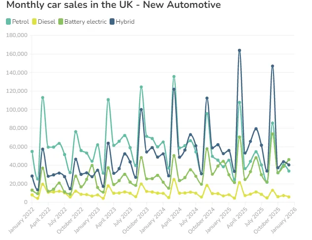 [3]Ted Welford. 2025 UK car sales figures: these are the winners and losers. Car Magazine, January 6, 2026.
