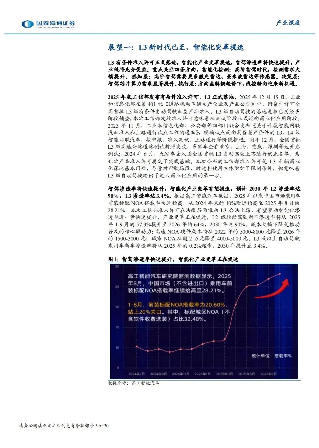 L3 有条件准入许可正式落地,智能化产业变革提速,智驾渗透率将快速提升,产业链将充分受益。