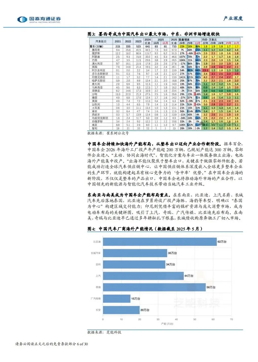 中国汽车产业在国际市场强势崛起,持续加码海外产能布局,从整车出口迈向产业合作新阶段,以领先的新能源与智能化技术带动当地汽车工业升级。