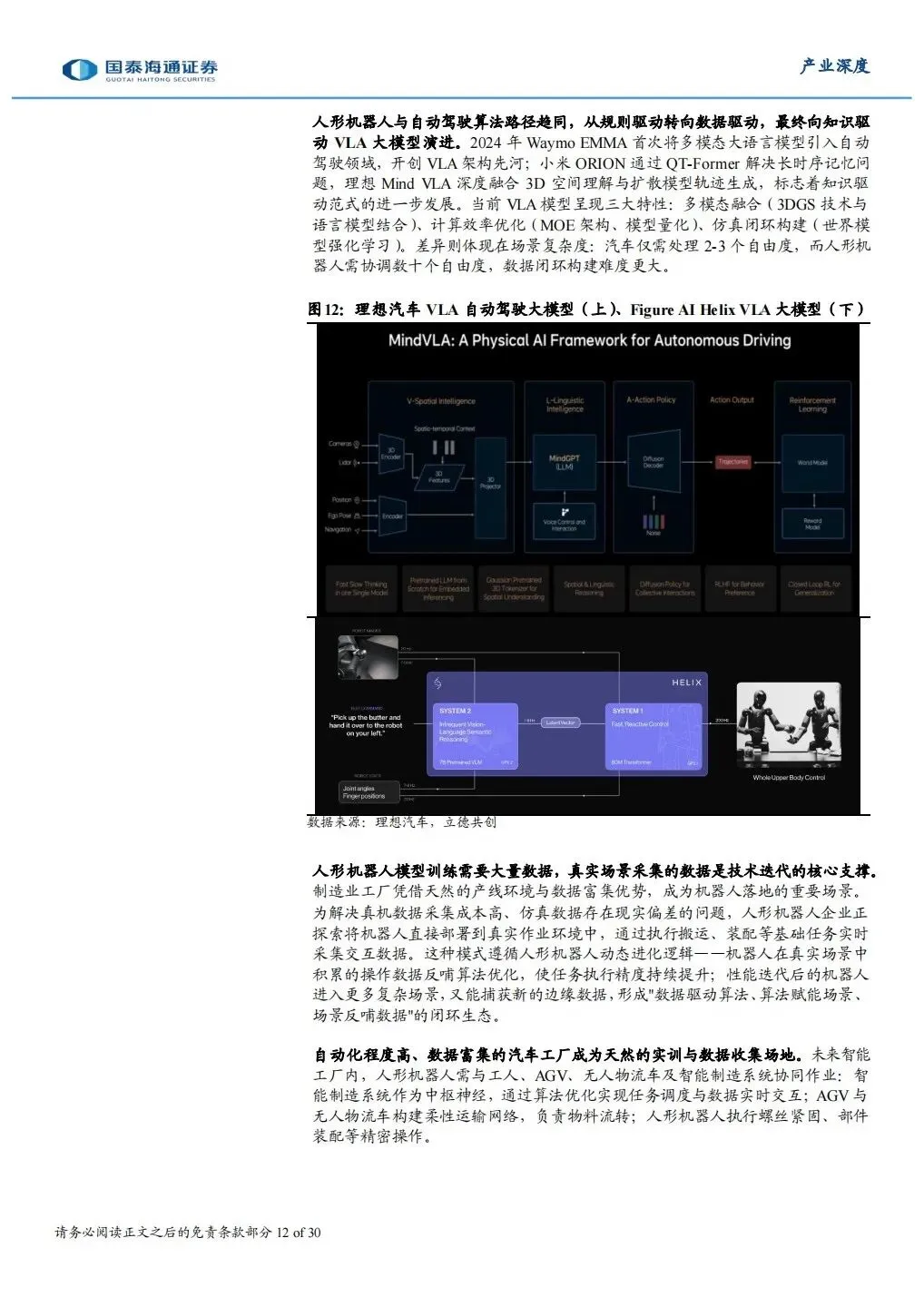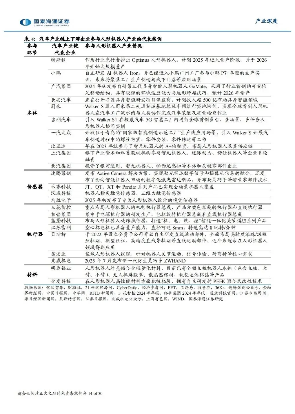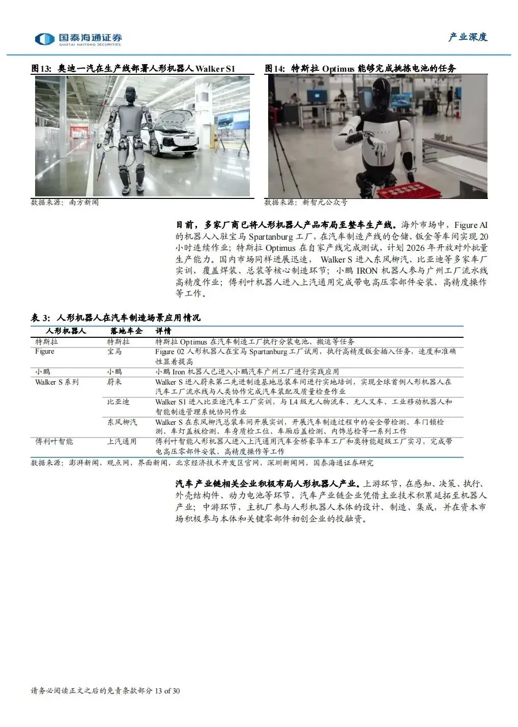 汽车产业链上下游企业从本体、零部件、数据采集、训练等多个环节赋能人形机器人,助力人形机器人迎来量产落地。