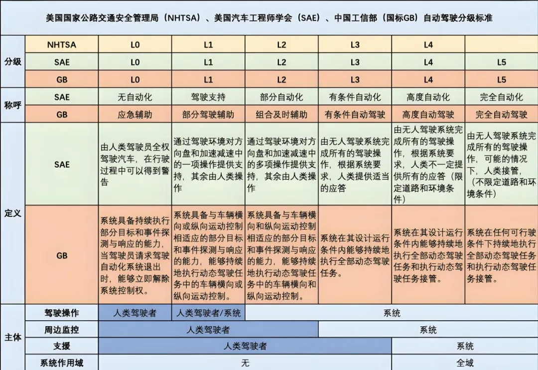 自动驾驶等级分类,图片源自:网络