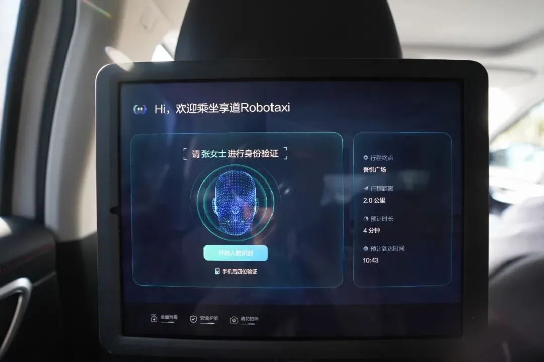 上车后,通过人脸识别或手机号后四位验证乘车人身份之后,就可以出发啦!