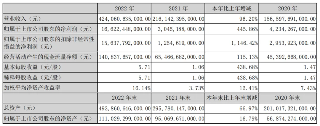 据比亚迪2022年财报显示,比亚迪2022年营收和净利润相比2021年都翻了将近一倍。