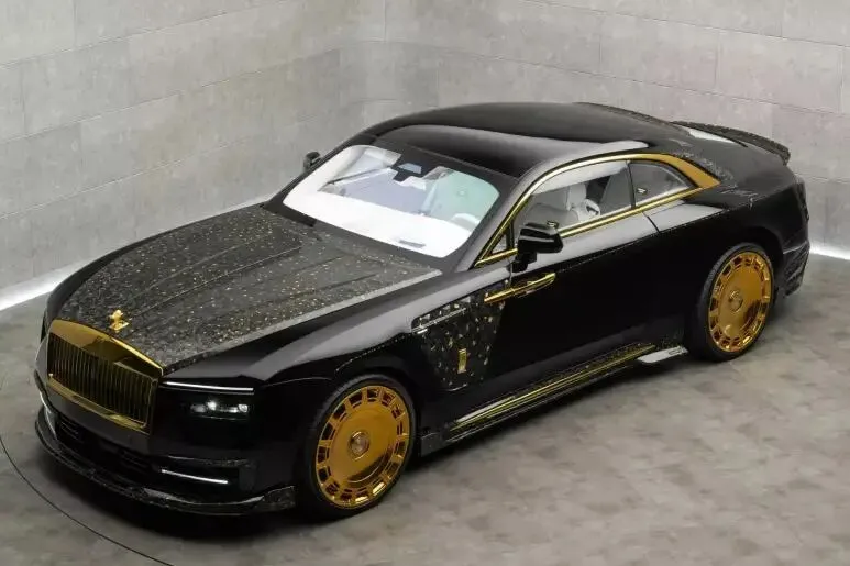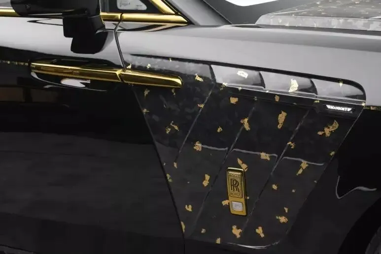 在售后服务改装行业,迈莎锐总是提出同样的问题。 "这种程度是否太过分了?" 此次以劳斯莱斯纯电动汽车spector为基础,推出了动员黄金、碳纤维和外部扬声器的极端作品。 名字就给人一种强烈的视觉冲击力。