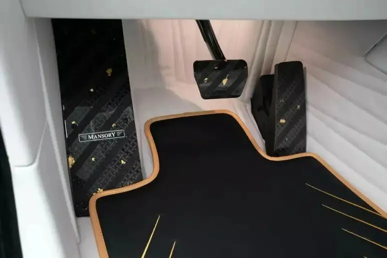 车身下端也不例外。 侧面裙子和尾灯周围、后扩散器和唇部扰流板顶部都增加了金色和碳元素亮点。 再加上24英寸锻造轮毂,将存在感极大化,轮毂也是金色收尾。 比起实用性,更注重视觉冲击。